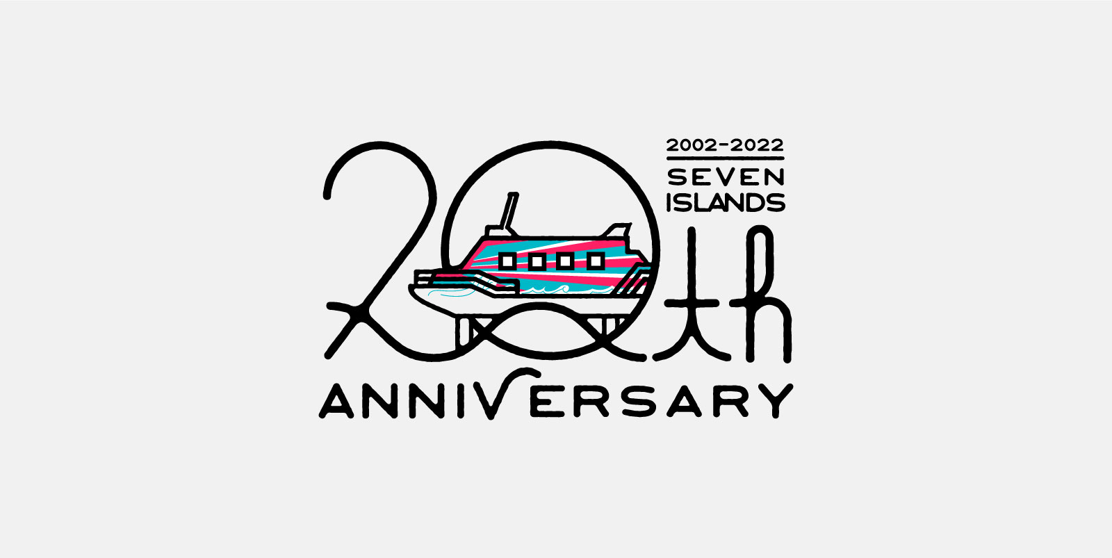 東海汽船株式会社の高速ジェット船が2022年4月1日に就航から20周年を迎えます。その記念ロゴを制作しました。基本のロゴの他に、現在就航している4隻(セブンアイランド結、愛、友、大漁)の船体の色を反映したロゴも作り、シー…