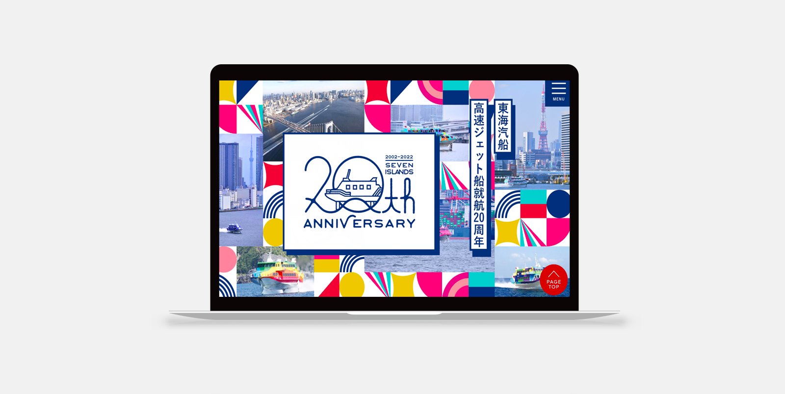 東海汽船株式会社の高速ジェット船就航20周年のためのロゴ制作、ポスター、Webサイトを作成しました。